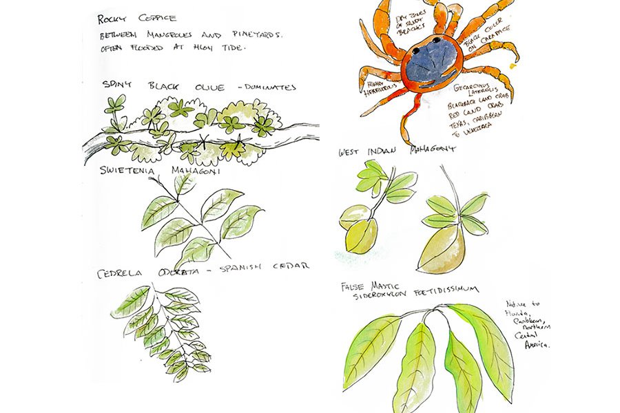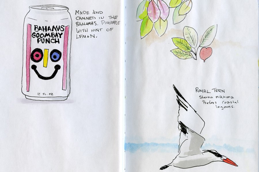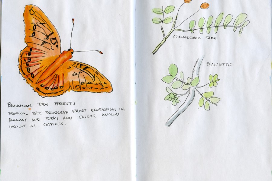 Armed with his nib pen, markers, and watercolor travel set, Erik Gauger records all his trips through gorgeous and educational illustrations. Click on the photo above to see his sketches from the dry forest of the Bahamas.
