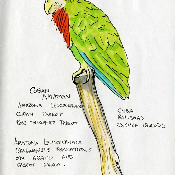 The Cuban Amazon, also known as the Rose-throated Parrot, is found in Cuba, the Bahamas, and Cayman Islands.