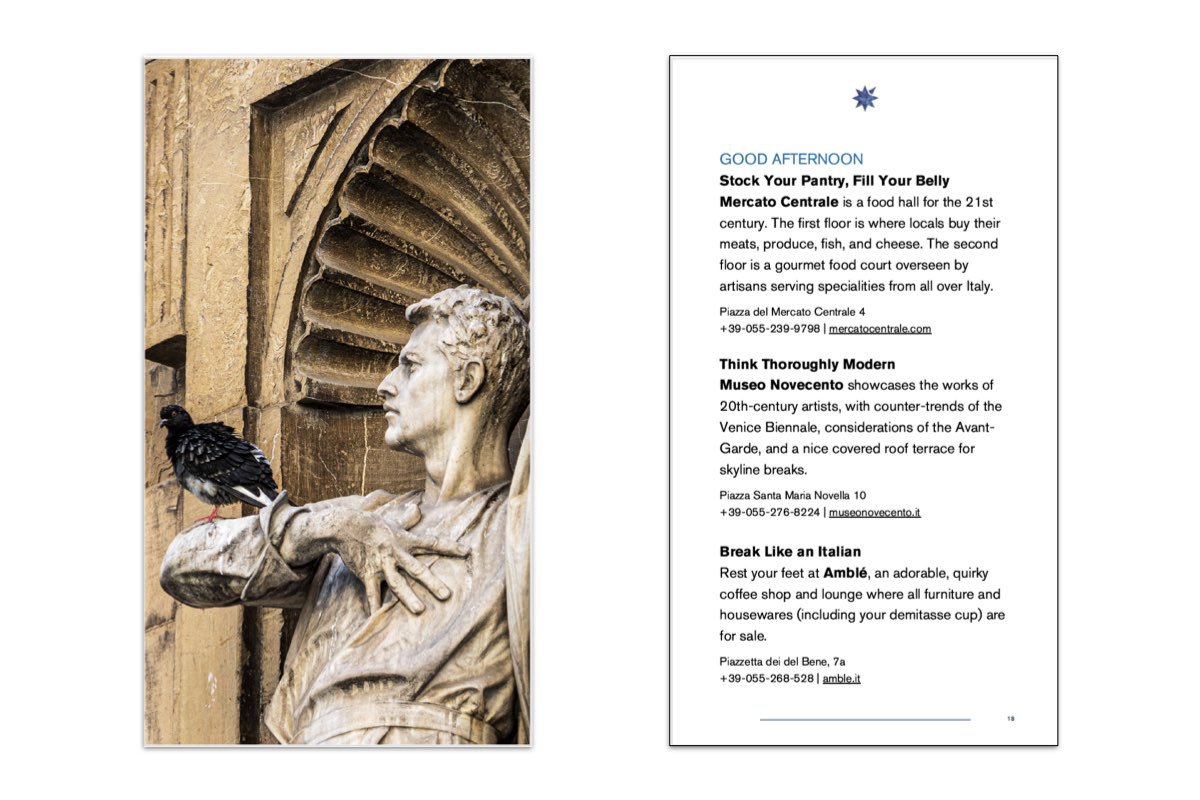 More than a list of the best hotels, restaurants, shops, sites, cafes, and bars, the guides are plans of actions that organize all those great options for you, step by step. Like having a personal concierge in your pocket, the guides take the guesswork out of trip planning — and guarantee unforgettable Italian vacations.