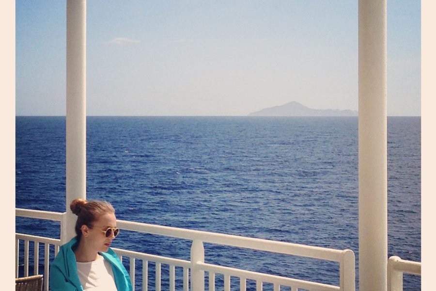 After a beautiful long weekend in Athens, we left for Paros from the Port of Piraeus at just after 6 a.m. on an early Monday morning in April. We stood at the back of the boat and watched the sun riseover the city. I was traveling with new Athenian friends (Yiorgos Kaplanidis, photographer; Costas Kokkinos, producer; and Thanassis Totsikas, director) and our model, Dasha, and we all quickly bonded. After the four-hour trip, upon arrival in Paros we went from the Port of Parikia to our rented private home, then on to Limnes Beach. We had our first shots within an hour of stepping off the ferry (which in Greece qualifies as a ship).