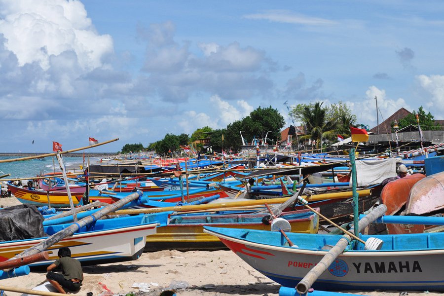Traditional Balinese fishing boats at Jimbaran, a popular tourist spot on the southern tip of Bali. Photo: CazzJj / Flickr