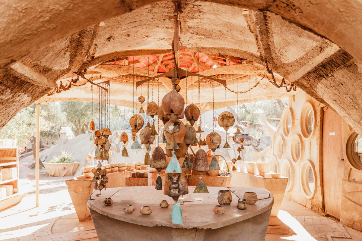 Arcosanti and Cosanti are also examples of an architect’s creative refuge. Paolo Soleri came to the U.S. from Italy to study under Wright before conceiving, in 1969, a self-sufficient “arcology” — his term for architectural ecology. While Wright favored space and sprawl, Soleri built for density and connection. Today, his unfinished sites are living experiments in urban design; guided tours dive deep into Soleri’s methodology and the Cosanti community, his drawing studio, craftwork structures, ceramic workshop, and the bronze foundry where, weather-permitting, you’ll watch in awe as 250-plus pounds of molten iron are poured into a Cosanti bell cast by highly trained apprentices.