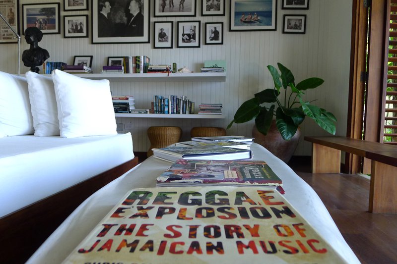In the gazebo, Ian Fleming photos line the walls, and reggae is everywhere.