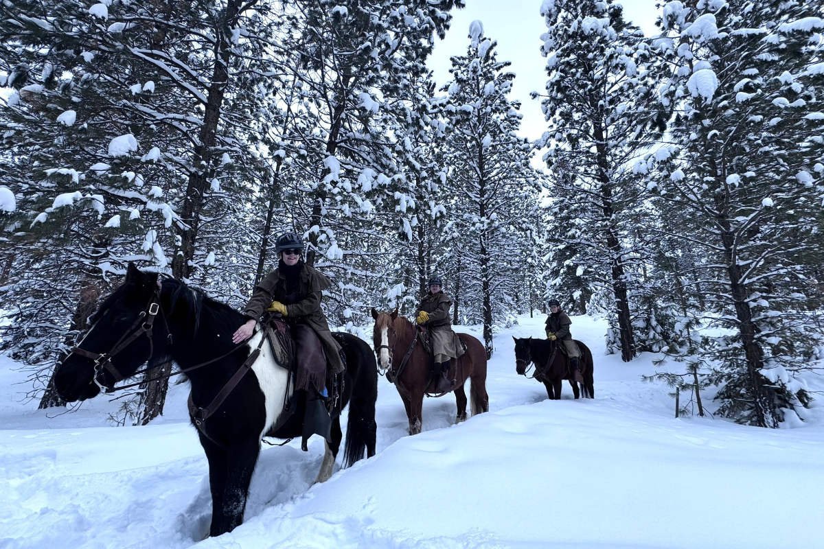 Donning practical Western gear – chaps, a long duster coast, sturdy boots, and heavy gloves – was the fun start of an unforgettable winter trail ride in the snowy mountains. Excellent wranglers found the right horse for me, so even with my limited riding experience I felt confident doing something outside my comfort zone.